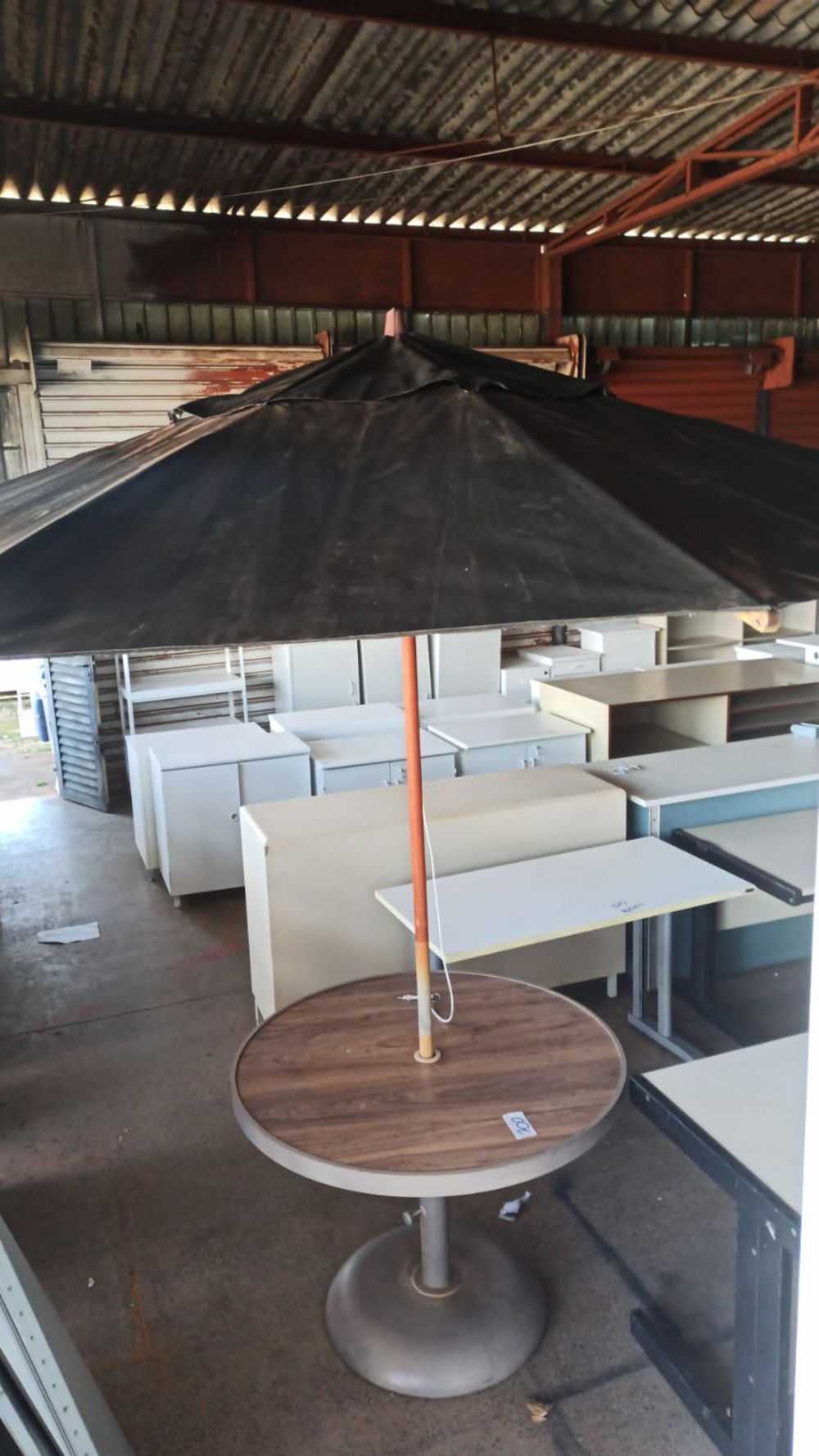 Mesa redonda com guarda-sol grande para área externa