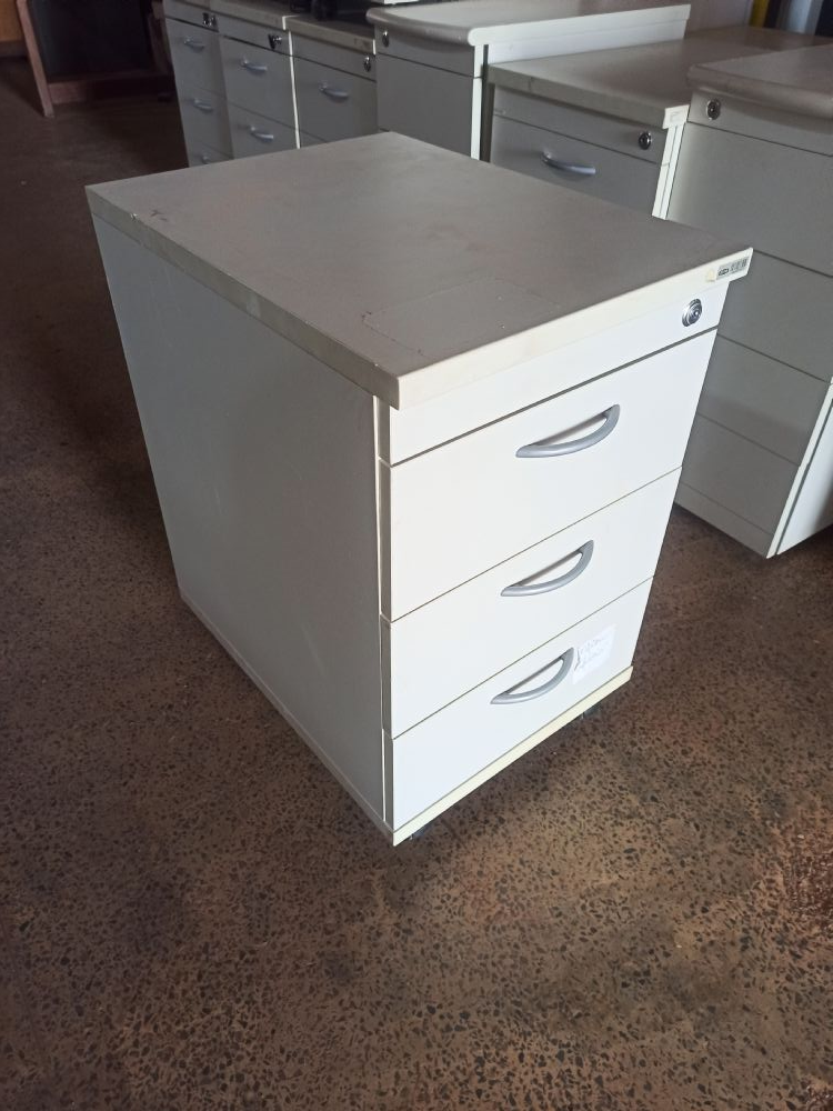 Gaveteiro de madeira MDF na cor branca com 3 gavetas e rodinhas